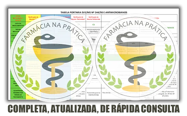 - Tabela COMPLETA, ATUALIZADA, DE RÁPIDA CONSULTA da Portaria 344/98 e Antimicrobianos.